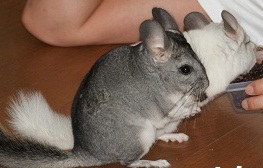 食べ物は、チンチラ専用のペレットと、ウサギ用の牧草です。