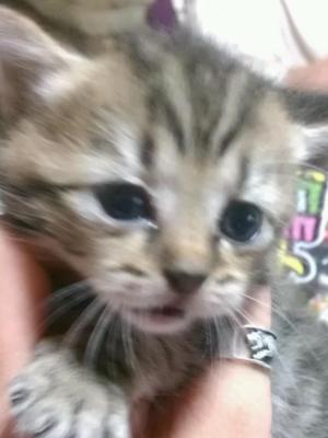 子供みいじめられてる所を保護しましたが、家には二匹の犬がいて飼えないため、生涯大切にしてくれる方探してます。引き取りにきてくださり、月一度くらいで構わないので写メを送ってくださる方…よければ飼ってあげてください。まだ目が開いたばっかの子猫で手のひらサイズで、グレーの虎柄です。ちいさいのでわかりにくいですが、多分、多分ですが男の子かな?みたいな感じです(ToT)