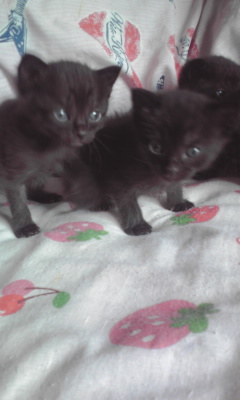 こちらのミスで去勢手術が間に合わず4匹の黒猫が産まれました。メスが3匹とオスが1匹です。どなたか一生涯可愛がって面倒を見てくれる方よろしくお願いいたしますm(_ _)m