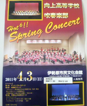 -------------------------------------- 横浜隼人高校 吹奏楽部 第8回定期演奏会 -------------------------------------- 日時 : 3月31日(木) 開場17:30 開演18:00 場所 : 神奈川県民ホール チケット : 500円/内200円被災地へ 指揮 : 山口卓郎